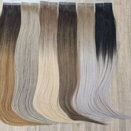 Die TAPES werden aus Echthaar gemacht und habe eine Breite von 4 cm. Je nach Pflege halten diese 2-3 Monate. Danach können sie vom Meistersalon Sabine Reiter wiederaufbereitet und somit wiederverwendet werden.